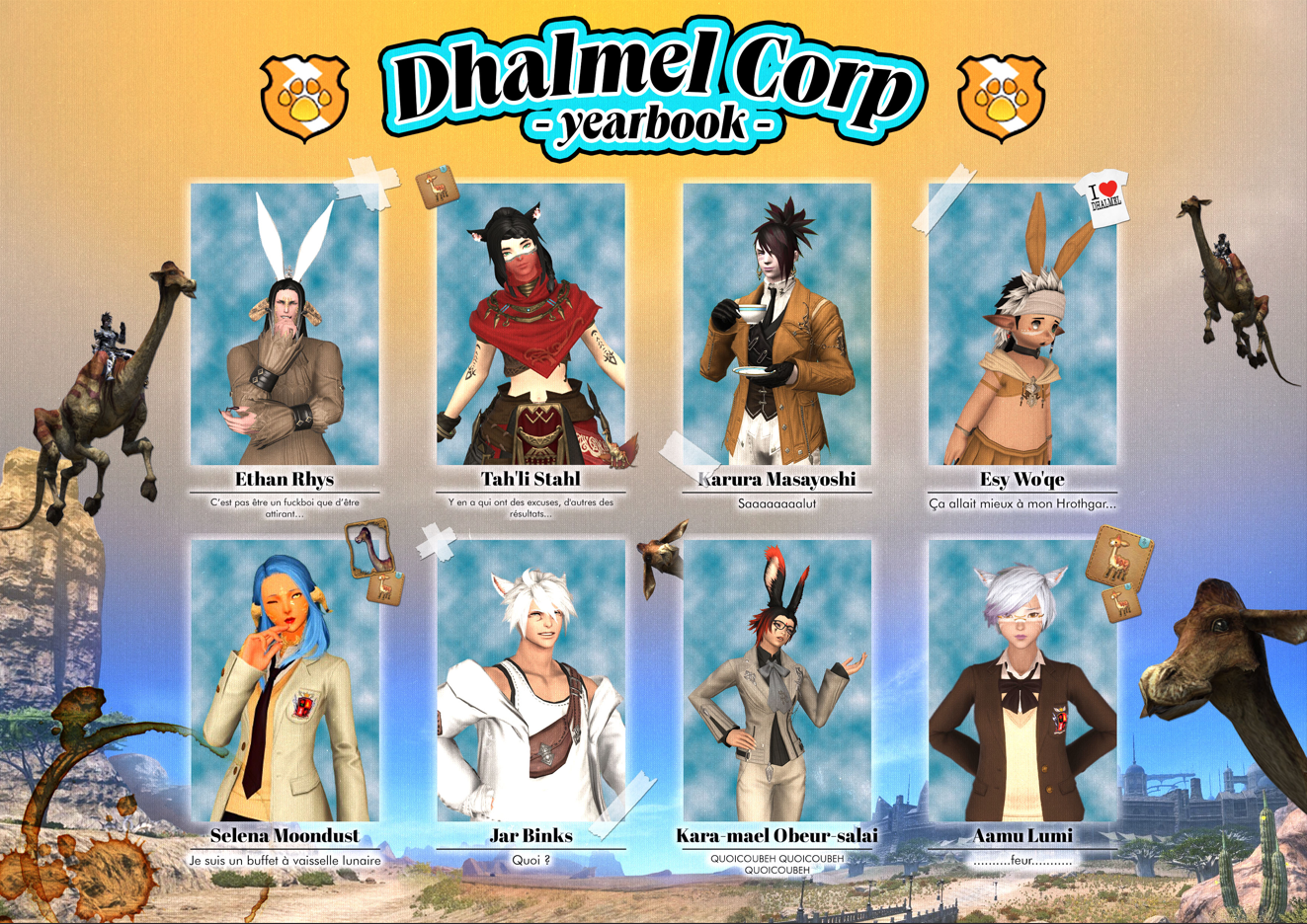 Un joyeux vrac de création réalisées pour les "Dhalmels", une groupe de joueurs sur le MMO FFXIV