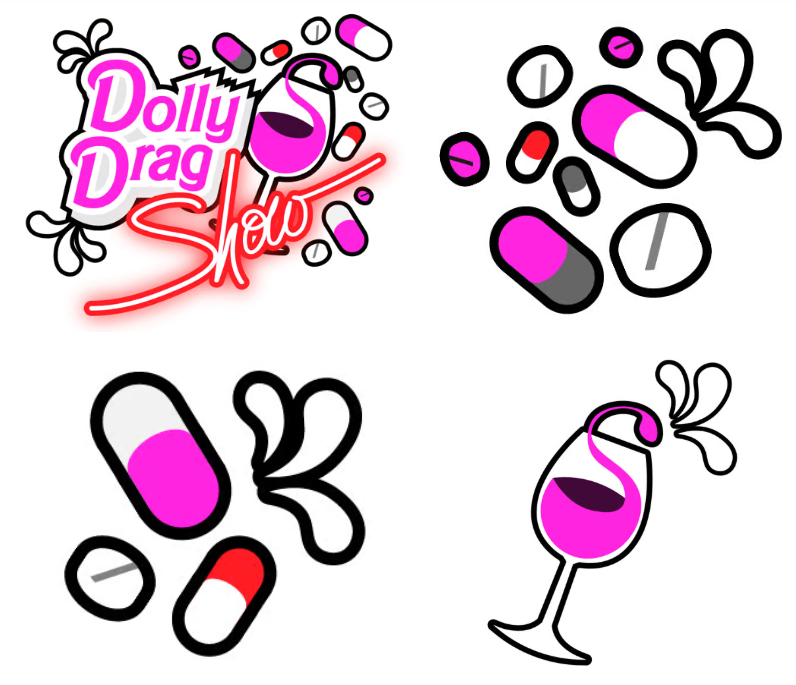 Création d'élément et affiche pour des évènements présentés par Dolly Post-partum, drag queen